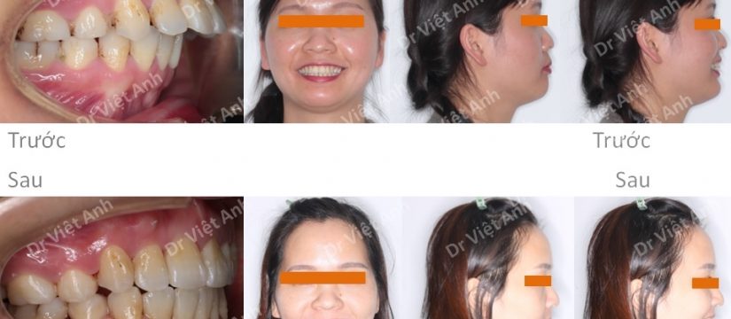 So sánh ảnh trước và sau niềng răng mắc cài mặt trong: hết ắn chìa, khớp cắn hạng II về hạng I, góc nghiêng hết hô