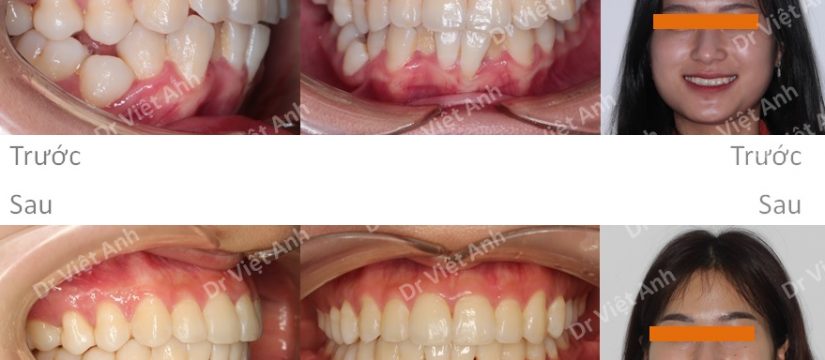 So sánh ảnh trước và sau niềng răng mắc cài mặt trong: răng đều hơn hẳn, hết khớp cắn đối đầu, nụ cười đẹp hơn