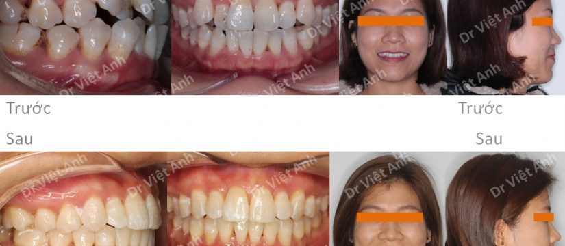 Phương án niềng răng mắc cài mặt trong: không nhổ răng, mài kẽ và cắm 4 vis để kéo lùi toàn bộ hai hàm