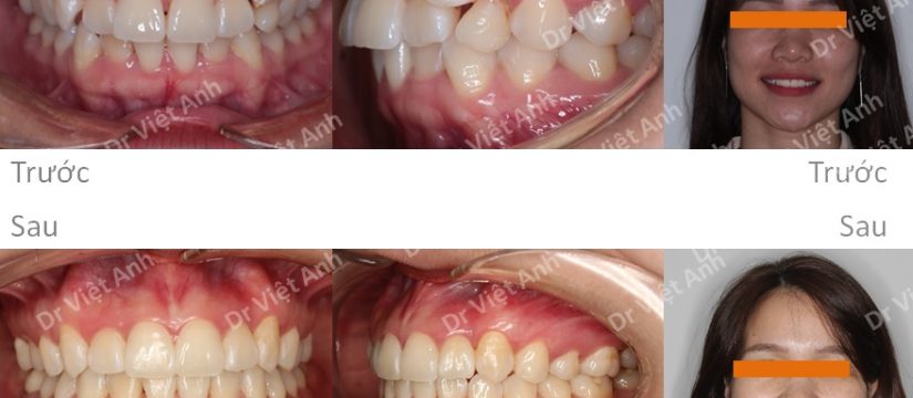 So sánh ảnh trước và sau niềng răng mắc cài mặt trong: răng đều hơn, hết răng khểnh, nụ cười đẹp hơn hẳn.