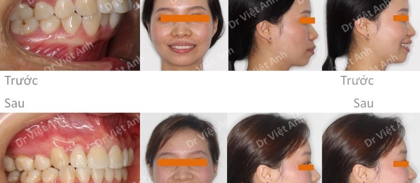 So sánh ảnh trước và sau niềng răng mắc cài mặt trong: răng đỡ chìa, góc nghiêng gần như hết hô,đạt chuẩn Hàn Quốc