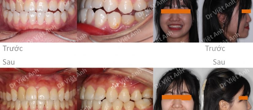 So sánh ảnh trước và sau niềng răng mắc cài mặt trong: hết khớp cắn ngược, nụ cười tự tin hơn, góc nghiêng đẹp hơn hẳn, môi dưới đỡ trề