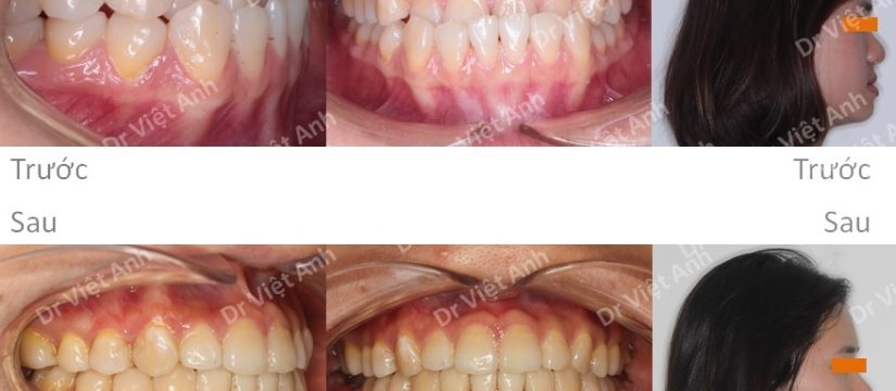 Niềng răng móm, khớp cắn ngược, kéo đóng khoảng mất răng hàm trên bằng mắc cài mặt lưỡi