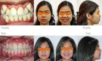 Hình ảnh trước khi niềng răng tại trung tâm niềng răng chuyên sâu Thạc sĩ Bác sĩ nội trú Việt Anh: răng lộn xộn, khớp cắn sâu, hàm trên hô Phương án niềng răng mắc cài mặt trong: không nhổ răng, mài kẽ răng tạo chỗ sắp đều và kéo lùi toàn hàm trên Kết…